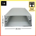 پروفیل چراغ لاینر روکار کد ۱۴ ۴/۵ سانتی به همراه دفیوزر وارداتی در سه رنگ ، سفید ، مشکی و نقره ای قابل عرضه می باشد ،  پروفیل ۴/۵ سانتی روکار یکی از پر مصرف ترین سایز های لاین نوری می باشد سهولت در نصب ، سایز مناسب که قابلیت اجرای ۳ لاین ریسه را دارد .برای انتخاب ریسه مناسب جهت استفاده در این پروفیل لاین نوری و تخمین قیمت تمام شده لاین نوری در قسمت پایین همین صفحه راهنمای خرید لاین نوری را مشاهده کنید ارسال به کلیه نقاط کشور.قیمت درج شده قیمت هریک متر از محصول می باشد . ابعاد داخل عکس کاملادقیق میباشد .این محصول در شاخه های 3 متری و 6 متری عرضه میگردد لطفا هنگام خرید مقدار را  ضریبی از 3 یا 6 انخاب نمایید.    تلفن سفارش : 09046423425